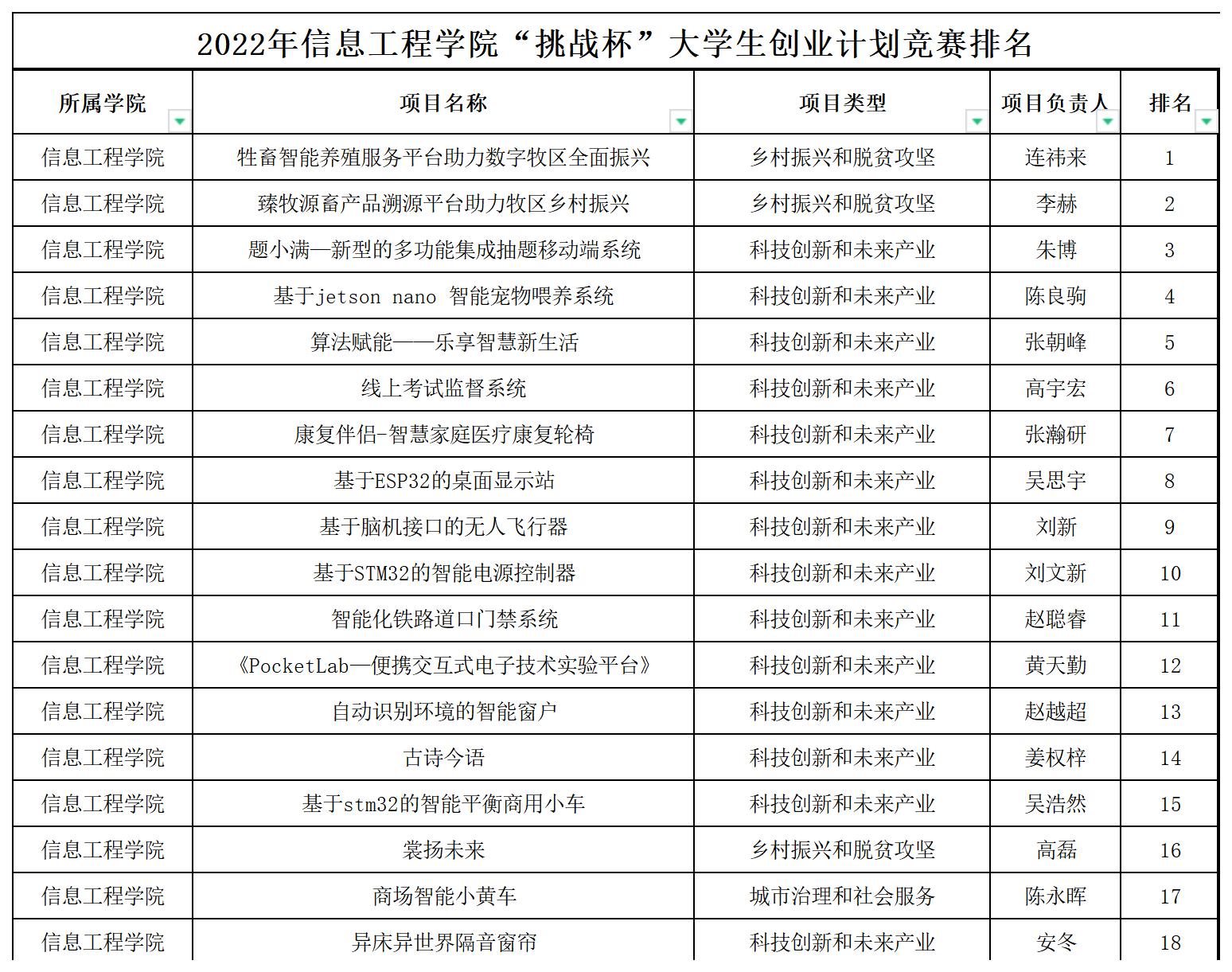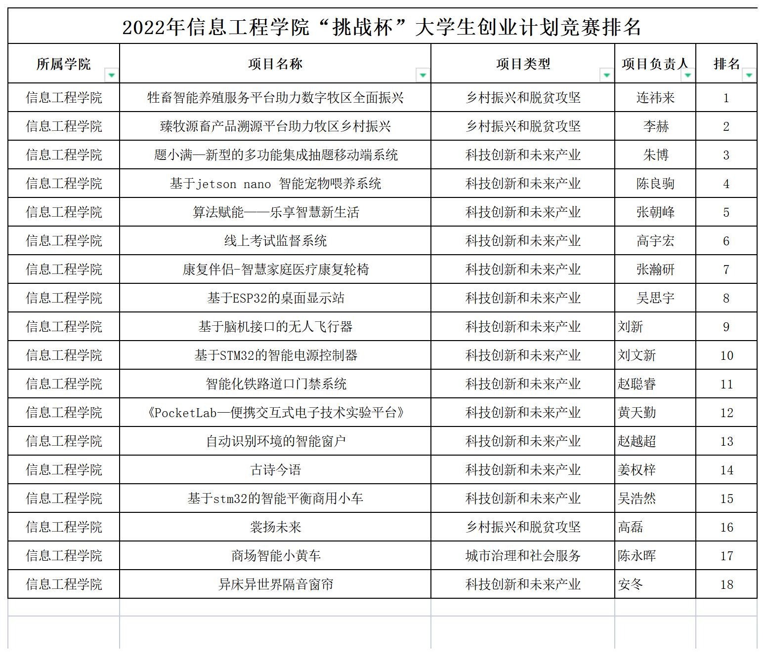 信息工程公司第十三届“挑战杯”全区大中员工创业计划竞赛院内赛结果公示(排名)
