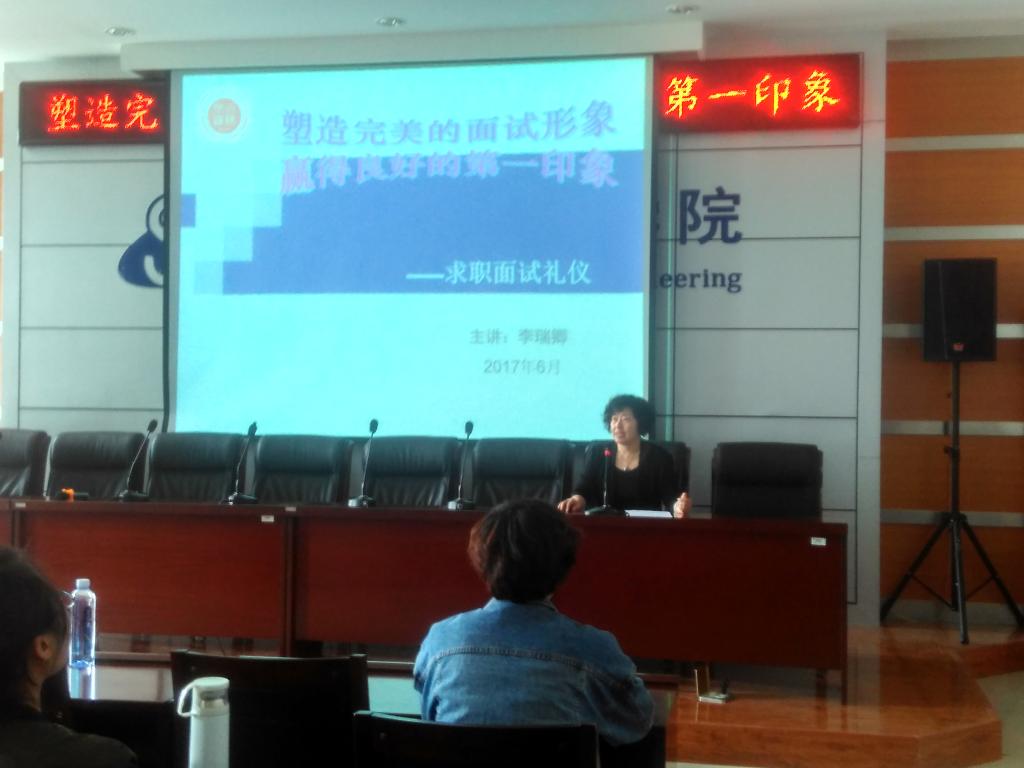 2017年6月6日下午15时,公司特邀李瑞卿老师在逸夫楼F302座求职面试礼仪讲座,公司党总支书记崔桂梅教授参加并主持了本次讲座。