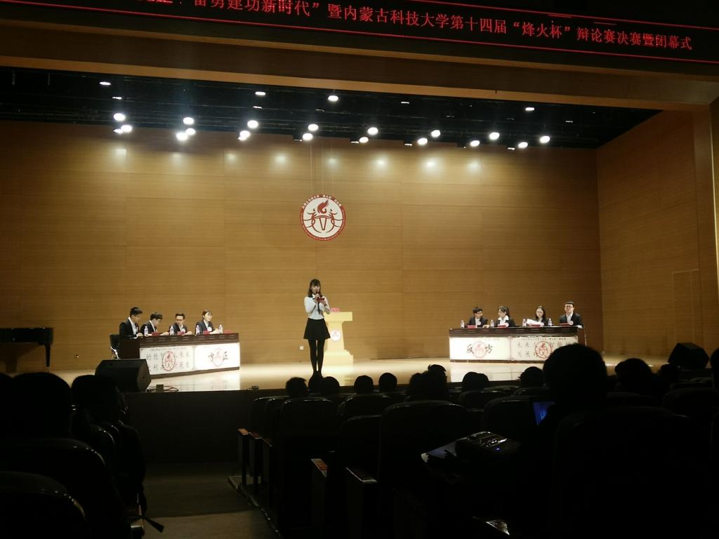 古有卧龙诸葛舌战群儒,今有群英荟萃慷慨陈词。11月24日晚19时,由校团委、校员工会主办的太阳成集团tyc234cc主页第十四届“烽火杯”辩论赛决赛于音乐厅内举行。决赛特邀文法公司副教授张晓利、马克思主义公司副教授张彦斌、校辩论队指导老师妥佳宁、指导教师青格乐图、校团委书记韩冰作为嘉宾及评委出席。