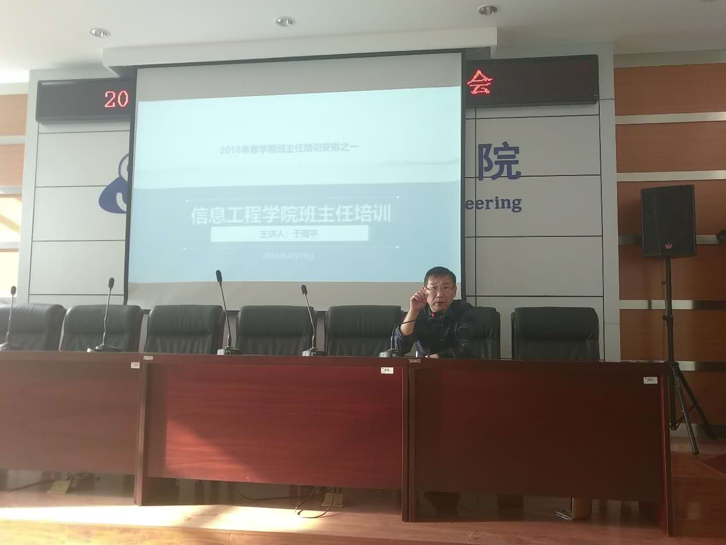 为进一步学习宣传党的十九大会议精神,深入贯彻落实全国高校思想政治工作会议精神和《中共中央国务院关于加强和改进新形势下高校思想政治工作的意见》,4月20日下午,信息工程公司特别邀请辅导员导师、员工工作委员会副主任于海平讲授作专题培训。培训由公司党总支书记崔桂梅主持,全院专职辅导员、班主任参加了培训。