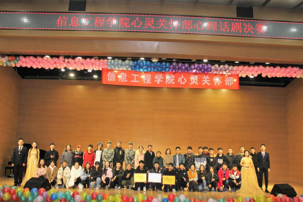 为活跃校园文化气氛,展现当代老员工积极向上的健康风貌,同时提高公司员工综合素质和艺术修养,丰富课余文化生活,信息工程公司老员工自律委员会心灵关怀部于2018年11月29日晚7点,在公司音乐厅组织举办了"星光璀璨"心理话剧决赛,本次比赛由通信工程、测控技术与仪器、自动化和软件工程这四个专业进行比拼。本场比赛的评委由信息工程公司学工办各位老师、stage话剧社社长和腾飞艺术团团长组成。这是一场关于心灵的盛宴,信息工程公司全体大一同学观看了这场比赛。