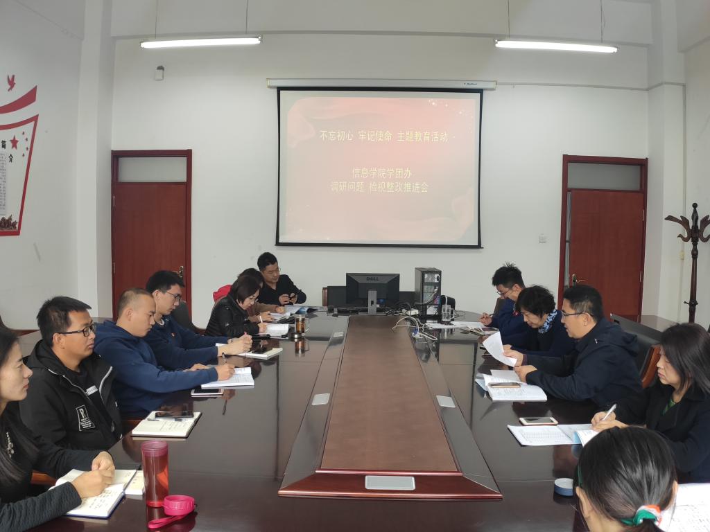 2019年10月15日上午,信息工程公司党总支召开主题教育检视问题整改落实推进会。信息工程公司党总支书记崔桂梅,副书记段志峰,全体专职辅导员参加会议。