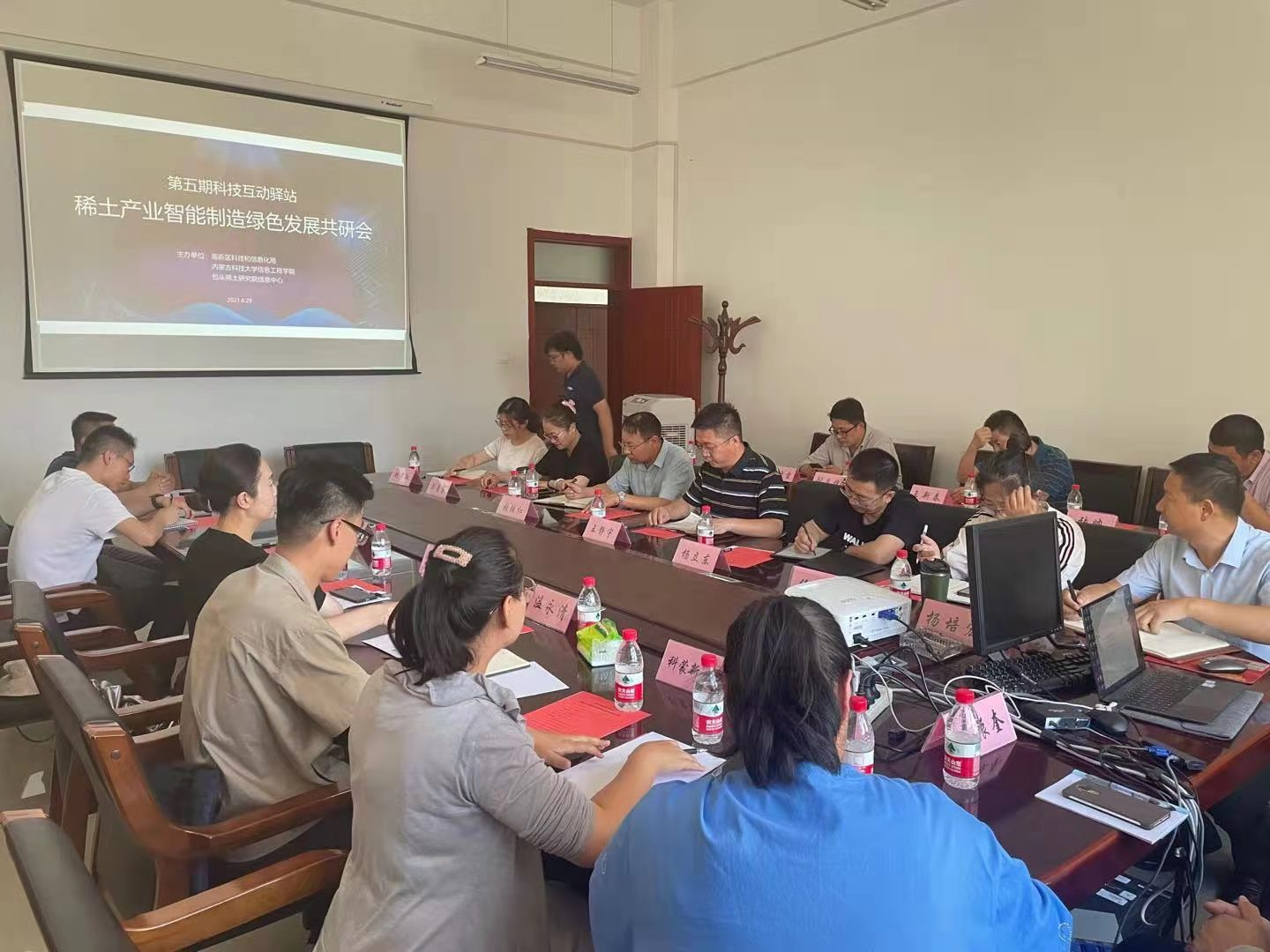 6月29日下午,为进一步促进信息工程公司与企业的交流合作,第五期科技互动驿站稀土产业智能制造绿色发展共研会在逸夫楼F304召开,会议由包头稀土研究院信息中心主任温永清主持,高新开发区科技局副局长刘相利,科长张杰,科长组惠敏,包头稀土研究院信息中心温永清 ,信息工程公司经理王静宇,副经理杨立东,教师代表以及利晨科技等12家企业参加了本次会议。