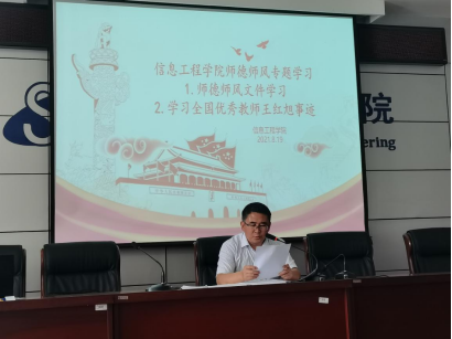 为全面推进师德师风建设工作,按照公司部署,8月19日,公司在逸夫楼F302进行师德师风教育专题党课。信息工程公司党委书记段志峰主持会议。