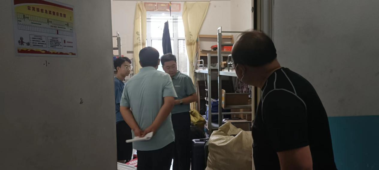 段书记一行先后走访了26号、6号员工宿舍楼,与同学们进行了亲切交流。走访过程中,段书记详细了解了员工宿舍口罩等疫情防控物质配备情况,特别关注员工到校后的思想动态及个人事务办理情况,细致询问了同学们饮食住宿、打包行李、毕业各项事宜办理中遇到的实际问题,重点关心关注毕业生的心理健康状态,对毕业生所遇到的一些困难困惑给予关心、指导和解答,鼓励大家攻坚克难。