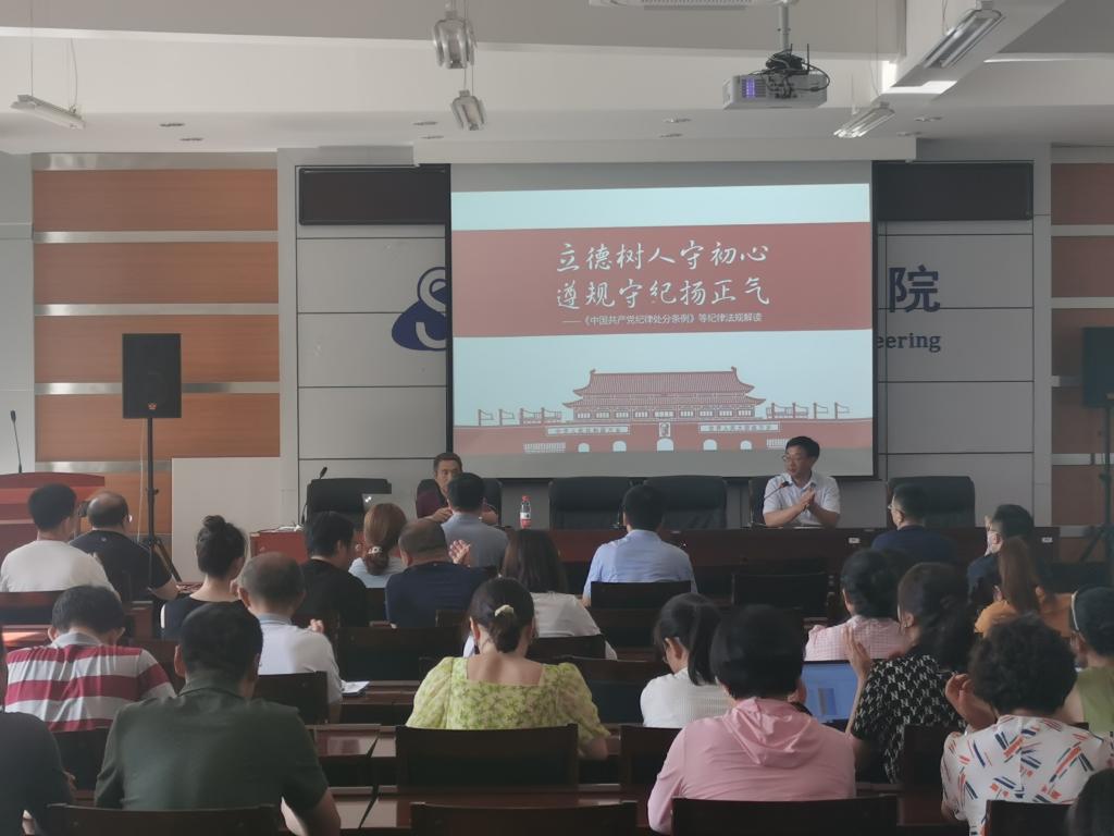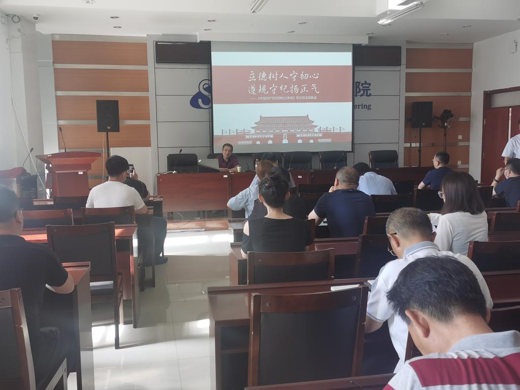 为进一步提高广大教职员工纪法意识、纪法知识,强化教职员工遵纪守法、廉洁自律思想自觉,7月6日下午,公司邀请公司纪检监察室(审理室)徐海生副主任为全院教职工进行纪法宣讲。