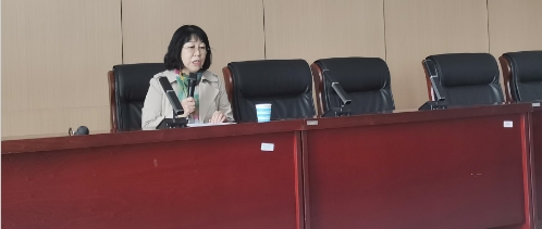 宣讲会上,赵莉萍教授从个人经历讲起,述说38年教师职业生涯中的所思、所感、所悟。她谈到自己从讲师、副教授、教授一路走来教育理念、目标方法和工作实践的心路历程。她谈到,作为一名高校教师,要“爱党、爱国、爱家庭”,要做好员工的思想引导,要在本职岗位中追求卓越、担当作为,要不惧诱惑、守住底线,坚定职业操守,做“四有”好老师。
