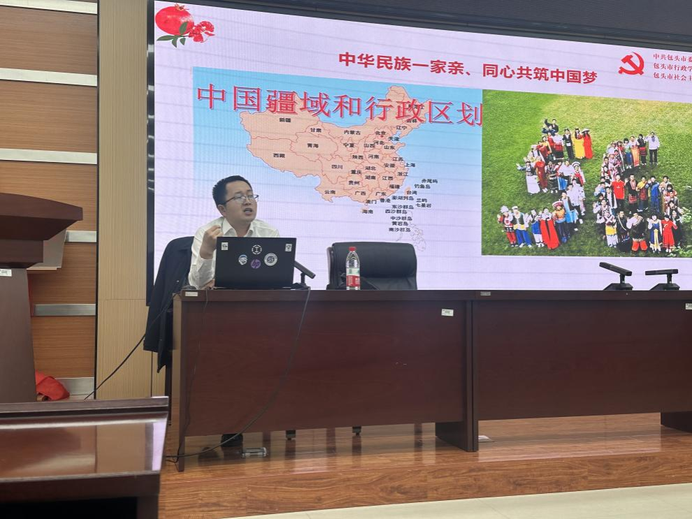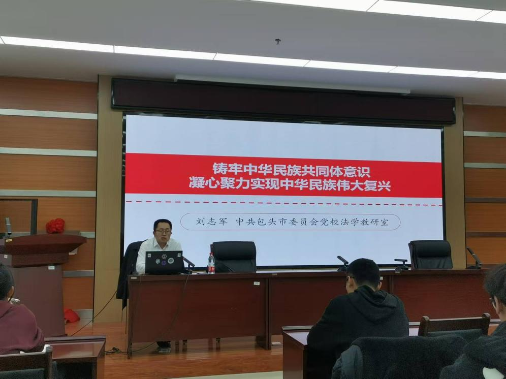 2024年12月5日晚7点,数智产业公司党委在逸夫楼F302举办主题为“铸牢中华民族共同体意识 凝心聚力实现中华民族伟大复兴”的精彩讲座。本次讲座特邀中共包头市委员会党校法学教研室的刘志军教授主讲,党员、入党积极分子以及青马班学员共计100余人参加。