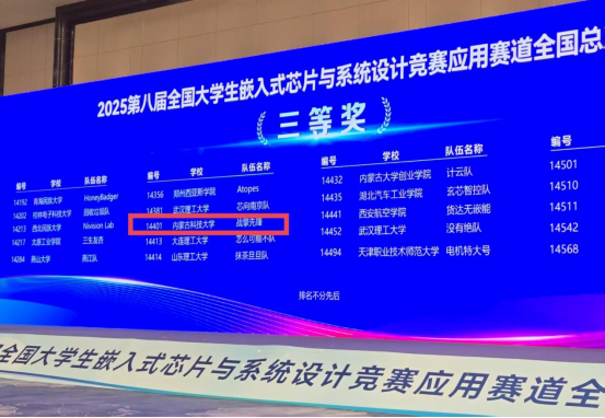 内科大学子在2025年第八届全国老员工嵌入式芯片与系统设计竞赛中获得佳绩