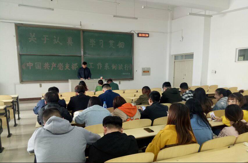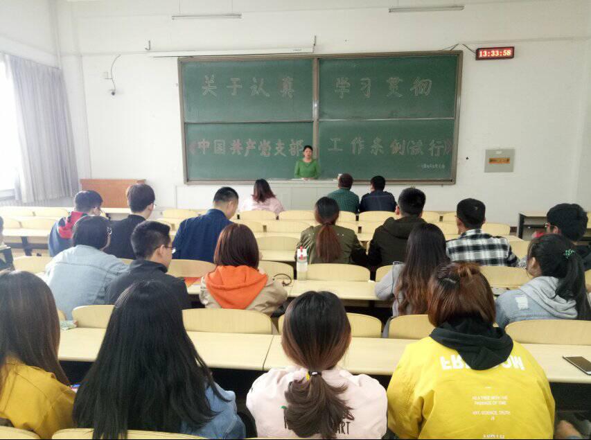 2019年4月11日12:40,计算机员工党支部开展了以“关于认真学习贯彻《中国共产党支部工作条例(试行)》”为主题的党支部组织生活大会。参加此次党课的有计算机党支部全体党员。《中国共产党支部工作条例(试行)》是为了坚持和加强党的全面领导,弘扬“支部建在连上”的光荣传统,落实党要管党、全面从严治党要求,全面提升党支部组织力,强化党支部政治功能,充分发挥党支部战斗堡垒作用,巩固党长期执政的组织基础,根据《中国共产党章程》和有关党内法规制定的条例。大会过程中,党员同志们谈到,党支部是党的基础组织,是党在社会基层组织中的战斗堡垒,是党的全部工作和战斗力的基础,必须贯彻落实新时代党的组织路线,把党支部建设放在更加突出的位置,加强党支部标准化、规范化建设,不断提高党支部建设质量。的确,支部的建设不仅要遵循条例中的原则、明确工作机制设计、确保组织生活的开展,更要把学习宣传、贯彻落实《条例》作为党组织的重要任务。切实把抓好党支部作为党的组织体系建设的基本内容、管党治党的基本任务、检验党建工作成效的基本标准,采取有力措施,推动《条例》落到实处、见到实效。