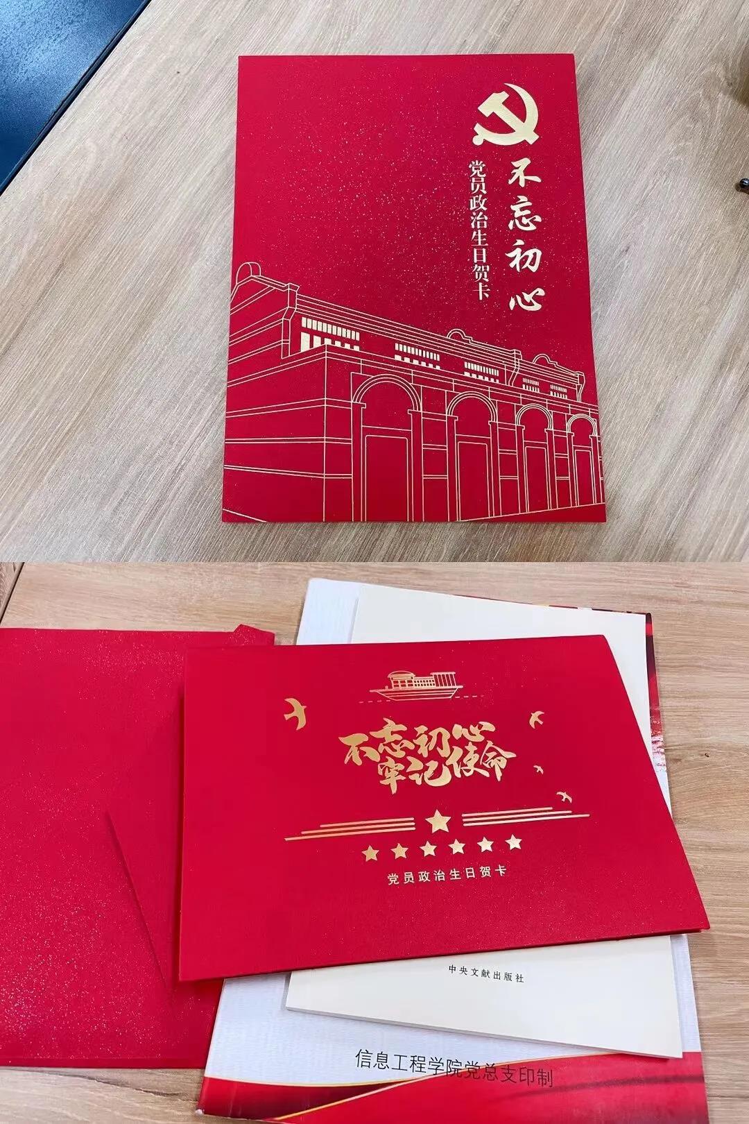 发放支部为每位党员制作的贺卡。希望大家不忘入党初心,牢记党的宗旨,增强党员意识,坚定党的信念,发挥党员先锋模范作用。认真学习习近平新时代中国特色社会主义思想,奋发有为、勇于担当,奉献新时代,在为党和人民事业不断做出贡献的同时书写好自己的人生篇章。