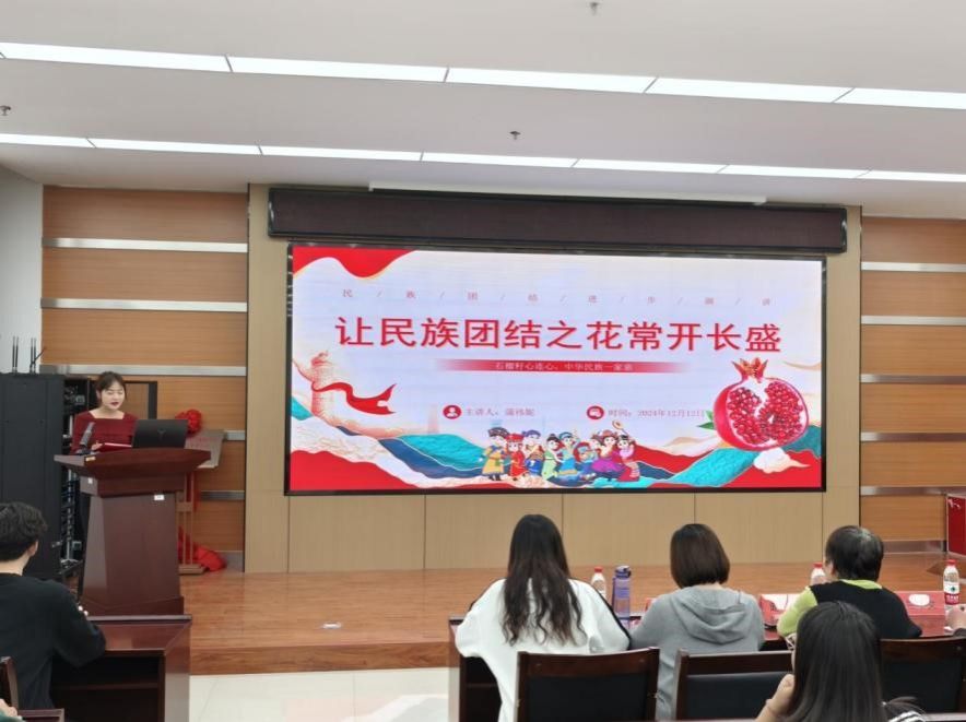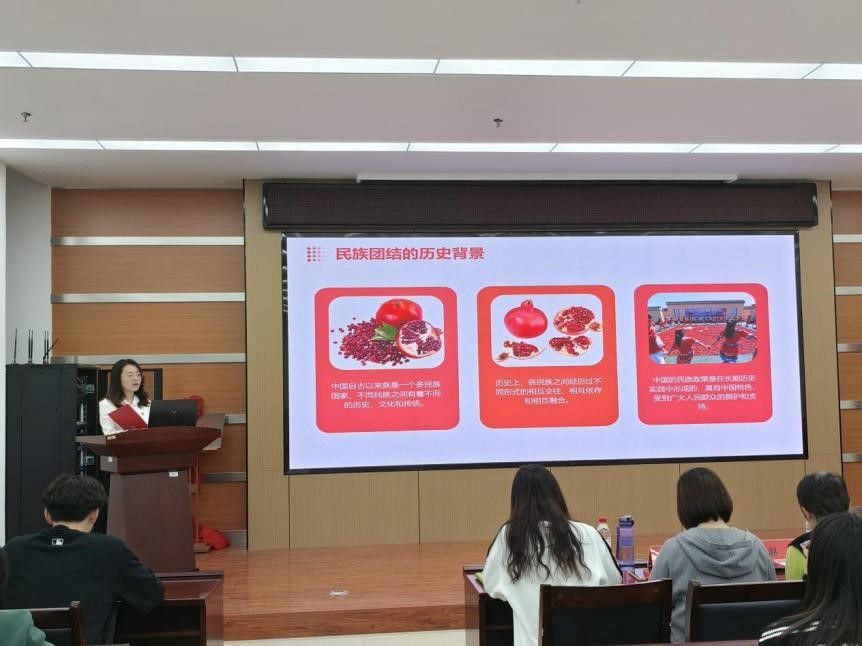 为深入贯彻落实习近平总书记关于民族团结的重要论述,进一步增强广大党员和青年员工对中华民族共同体意识的认同,培养新时代民族团结的“守护者”“传承者”和“践行者”,12月12日晚19:00,由太阳成集团tyc234cc主页党委主办的铸牢中华民族共同体意识理论宣讲比赛在逸夫楼F302举行。本次活动的主题为“石榴籽心连心,中华民族一家亲”。太阳成集团tyc234cc主页党委副书记副经理陈伟、各支部书记、部分党员和积极分子共计103人参加了本次活动。