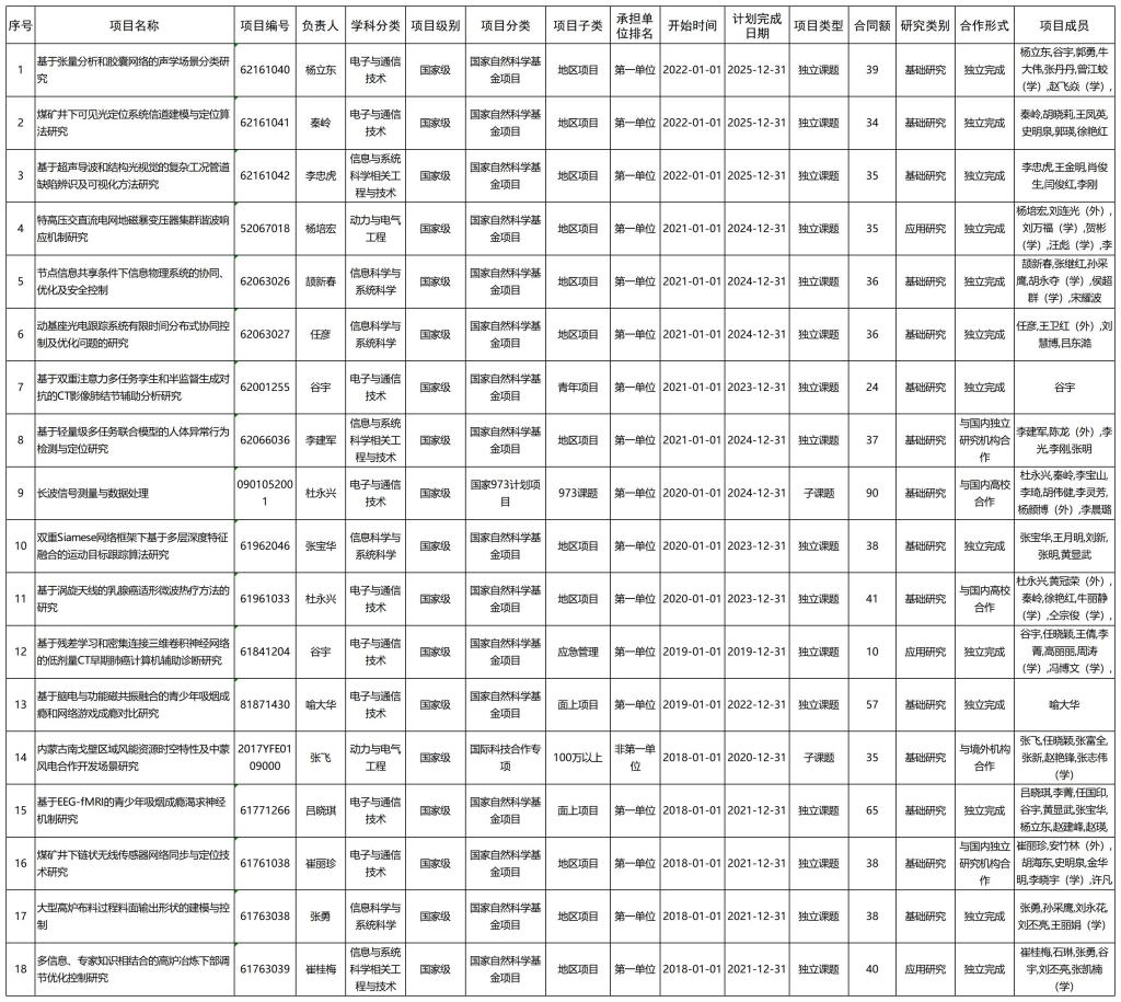 信息工程公司2018-2022年纵向项目(国家级)