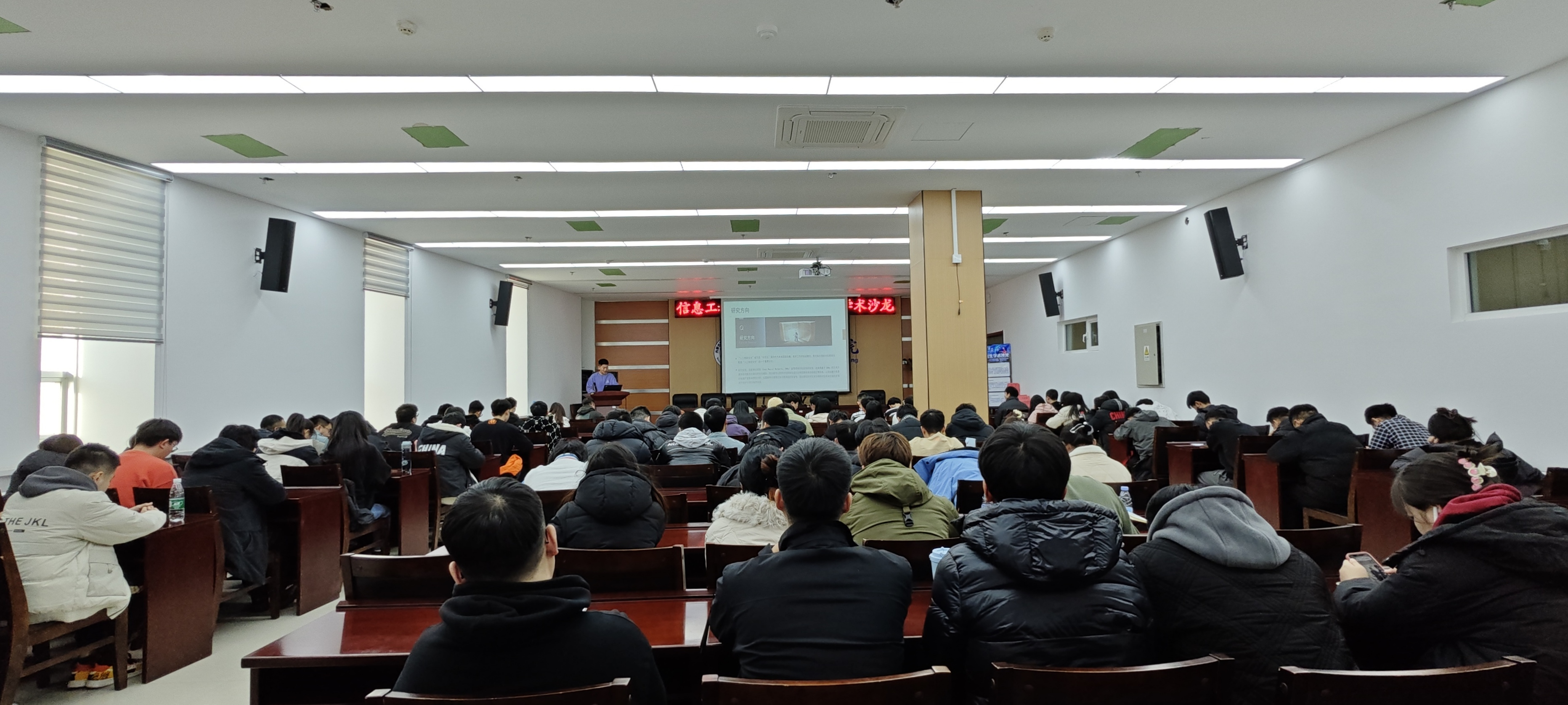 为促进优秀科研成果的交流,增强学术创新意识,提高学术表达能力,激发学术激情,拓展知识边界,太阳成集团tyc234cc主页信息工程公司第一届研究生学术沙龙于2023年12月1日在逸夫楼F302会议室成功举行。本期会议诚邀麻宏宇、杜忠红、郑学臣、高飞、张政、何佳龙、刘博七名优秀硕博研究生作专题报告,公司领导、相关学科负责人及全体研究生参加了会议,会议由信息工程公司经理王静宇教授主持。
